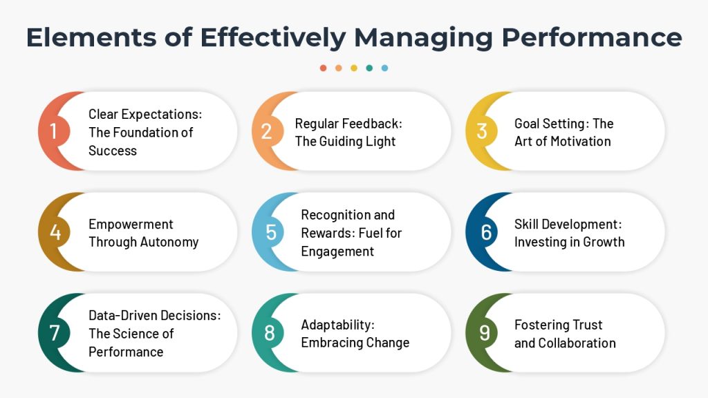 Managing performance is a blend of strategy and empathy, metrics and motivation. By focusing on clear expectations, constructive feedback, skill development, and recognition, organizations can elevate individual contributions and achieve collective excellence. In this delicate dance, each element plays a vital role in creating a workplace where talent shines and goals are realized.