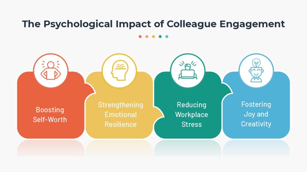 The psychological impact of colleague engagement is profound. It’s the thread that weaves mental well-being, emotional resilience, and professional satisfaction into a cohesive fabric of workplace harmony. When engagement thrives, so does the human spirit.